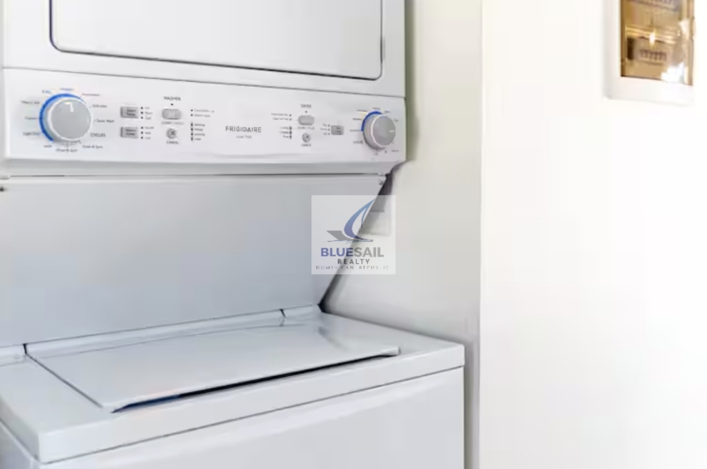 The property’s green space is professionally landscaped with lush tropical vegetation, adding privacy and a touch of paradise. A dedicated laundry room with washer and dryer is accessible for long-term use, making this 1 bedroom beachfront condo for sale in Cabarete as practical as it is beautiful.
