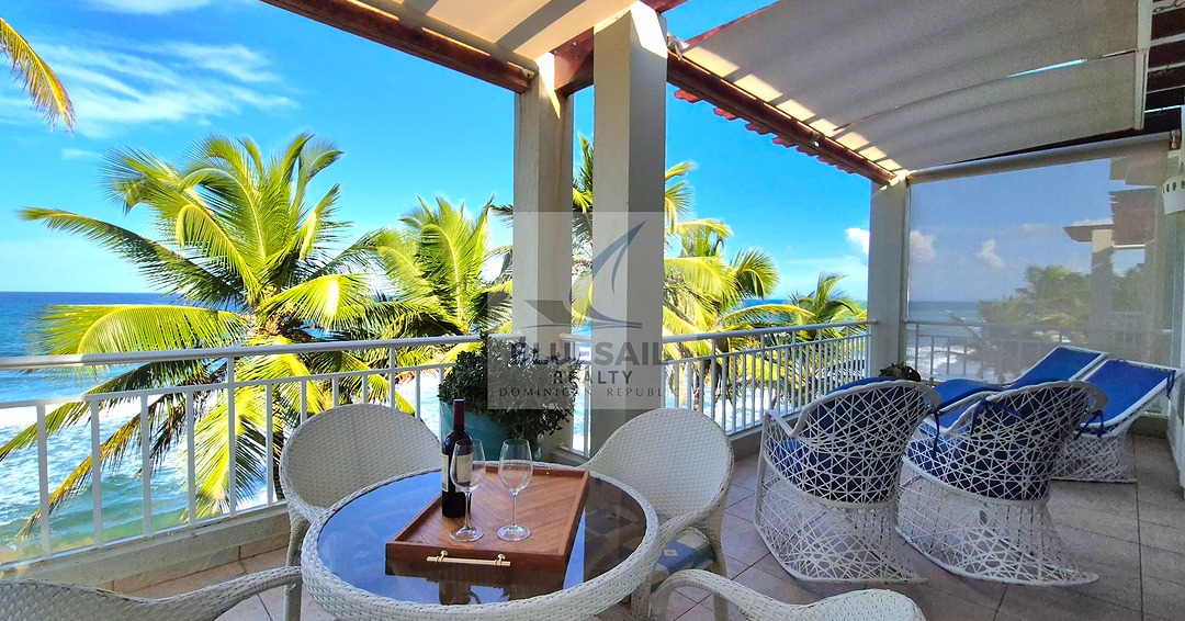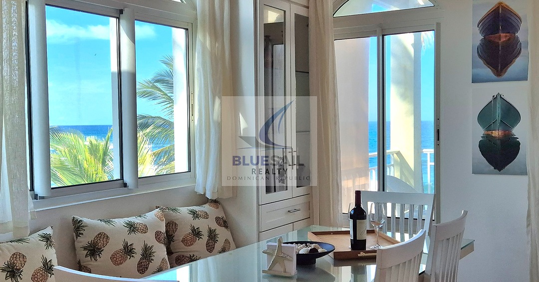 This exclusive Blue Sail Realty listing delivers unmatched coastal sophistication at an exceptional value. Located on the 3rd floor of a prestigious beachfront building in the heart of Cabarete, Dominican Republic, this 2-bedroom, 2.5-bathroom penthouse spans 1700 sq ft (158 m²) of refined living space. Featuring soaring cathedral ceilings, floor-to-ceiling hurricane-rated glass, and imported finishes, this fully furnished, turnkey gem offers a private terrace with sweeping Atlantic views and direct beach access just 30 seconds away. Priced at USD $419,000, this is the only top-floor penthouse currently available in this elite building — a rare opportunity at this price point.