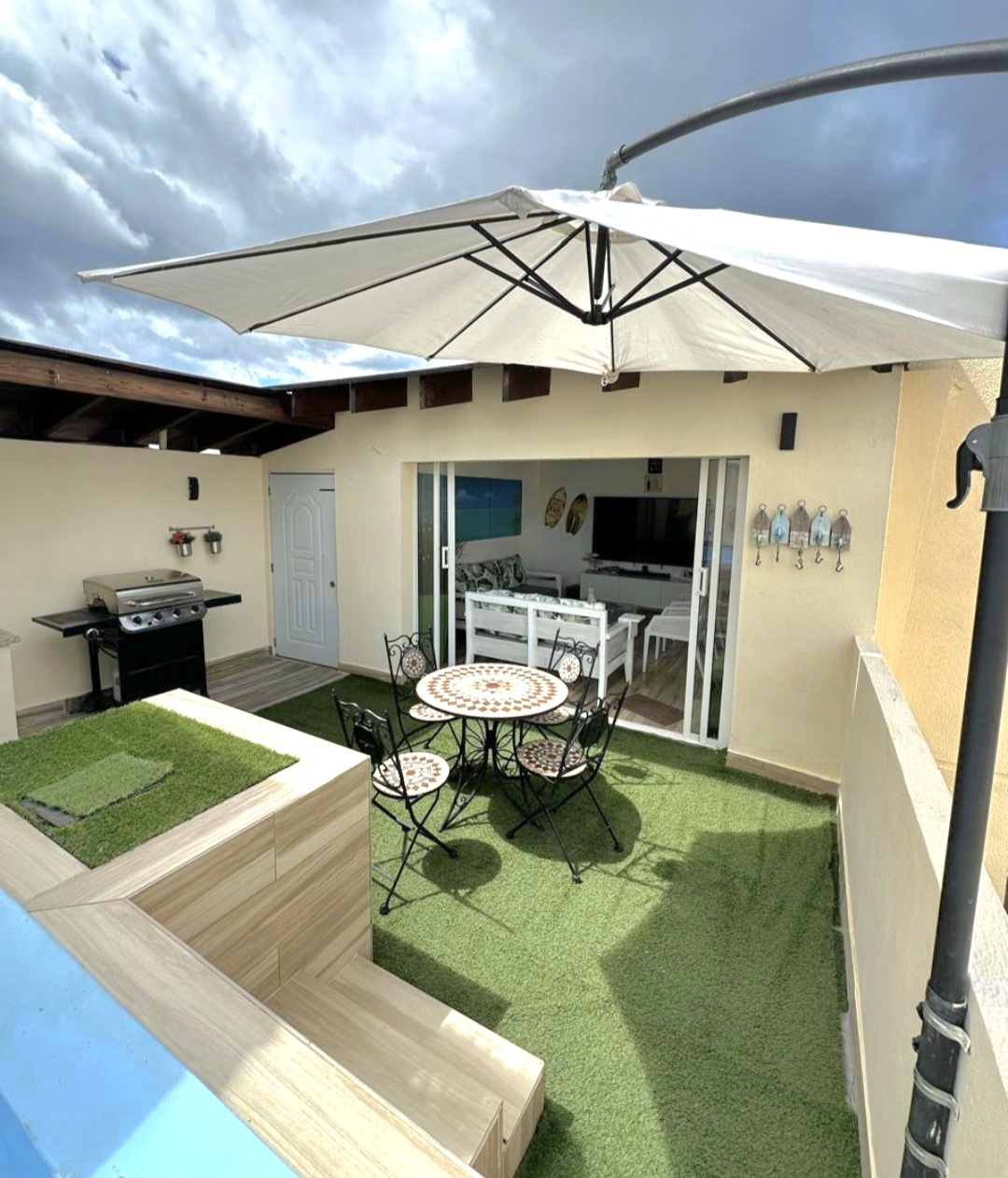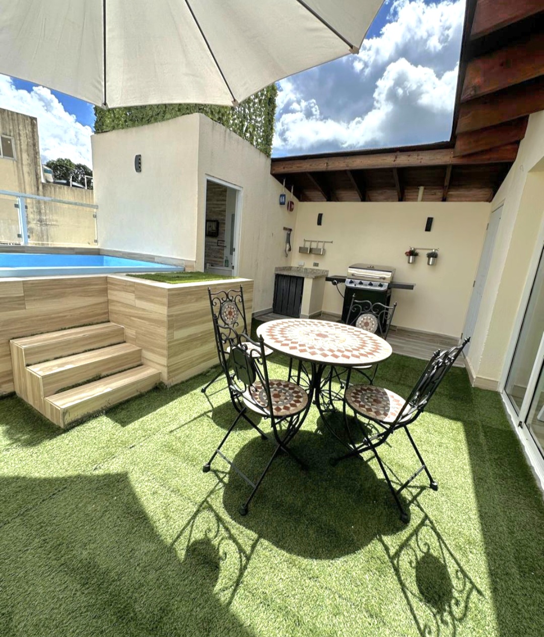 View detailed listings, drone videos, or virtual tours of this Dominican home for sale. In-person tours showcase the penthouse’s rooftop jacuzzi, open-concept kitchen, and gated amenities.